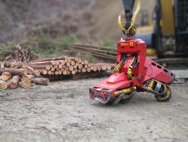 集材スピードが上がると造材スピードが追い付かなくなって、現場の作業バランスが取れなくなってため、そこで、導入したのが、タワーヤーダ―と同じKONRAD社のWOODY61です。