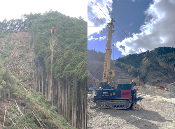 川井木材様では、かつて複雑にワイヤーを張って木材を搬出する「架線集材」を行っていました。
