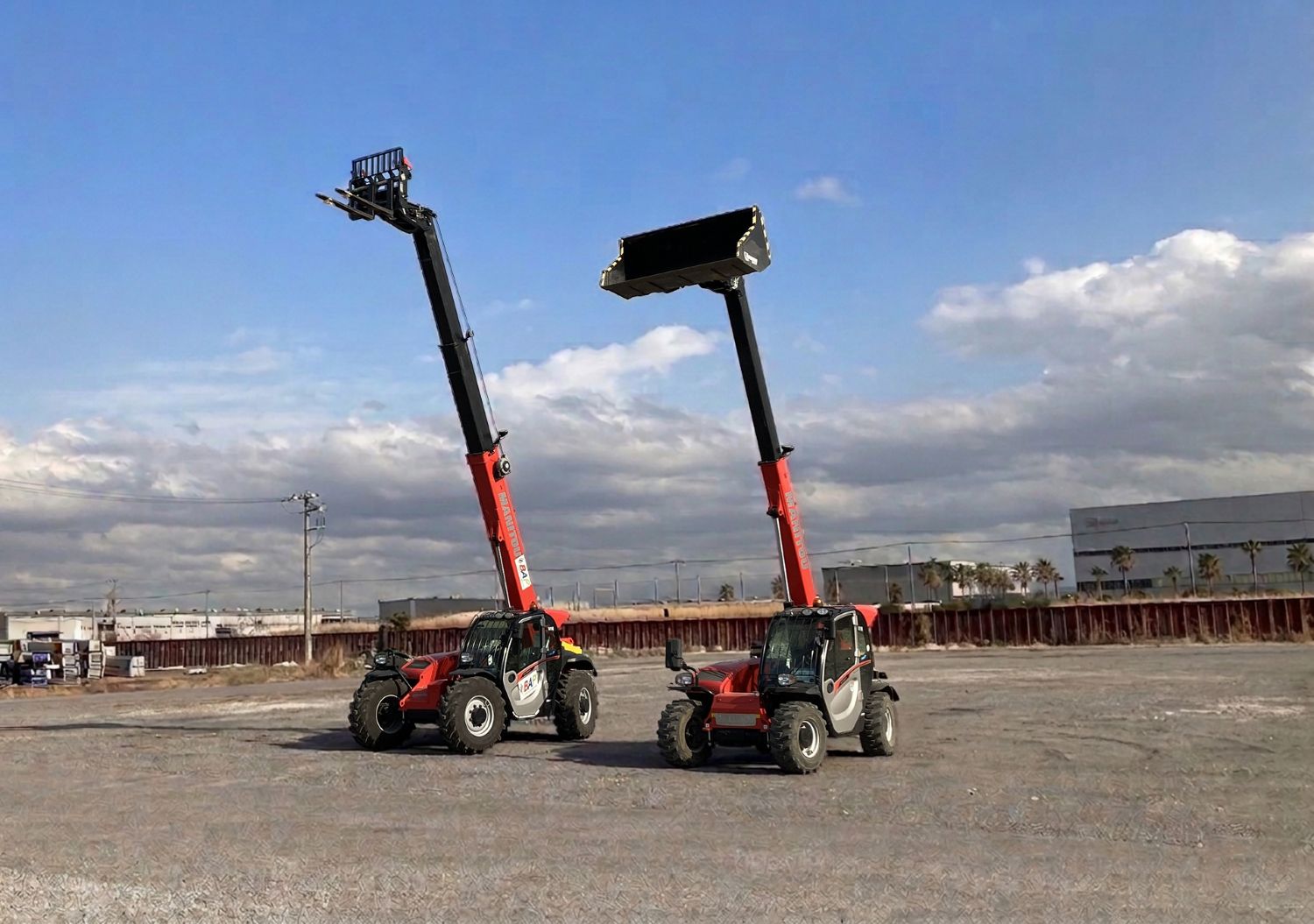 試乗会を実施するテレハンドラーとは建設業・港湾荷役・林業・産廃処理など多くの業界で注目が高まっている作業機械で、欧州や豪州では現場に欠かせない機械として普及しています。伸縮式ブームの先端に様々なアタッチメントを取り付けて、荷物の運搬・揚重・高所作業など、1台で幅広い用途に対応可能です。小型テレハンドラーMT625および中型テレハンドラーMT930をご用意しました。